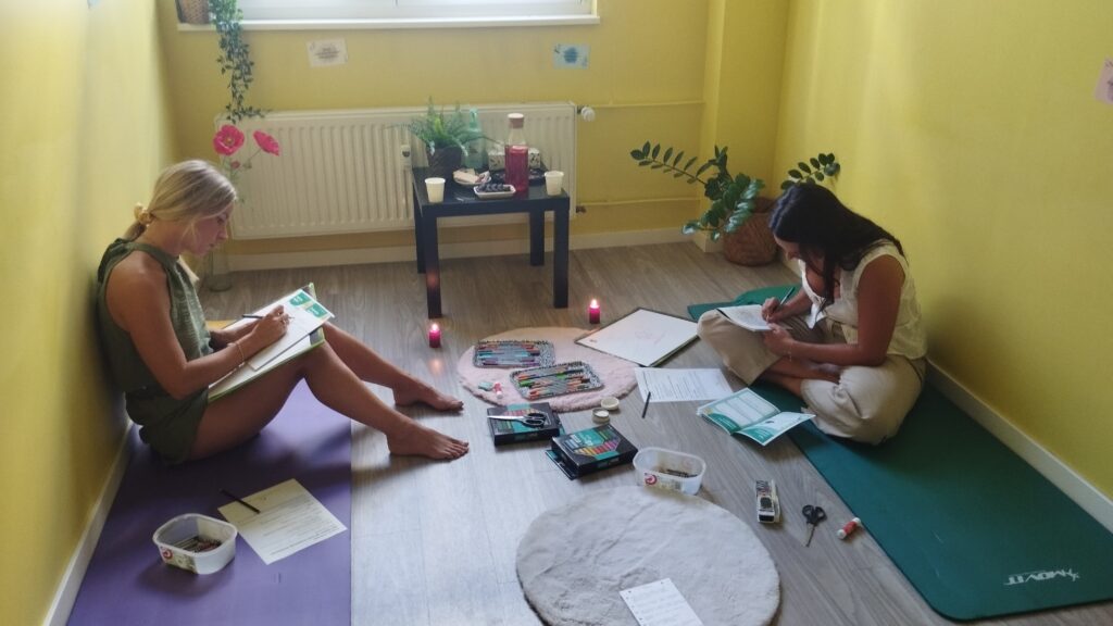 Aucune compétence artistique ou en sophrologie n’est requise. Juste l’envie d’être présente à toi-même, ça suffit amplement, c’est même l’essentiel 💛